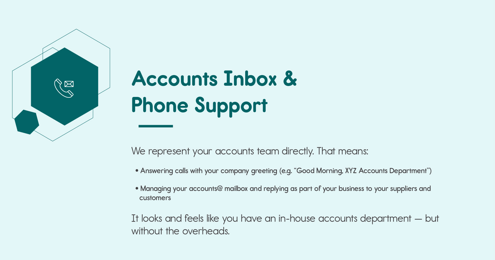 You get a dynamic accounts team that covers everything – bookkeeping, payments, reporting, payroll, and compliance – without the hassle of hiring in-house.